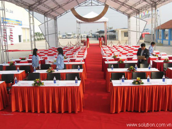 Công ty Solution cung cấp dịch vụ cho thuê bàn ghế, thảm trải sàn, dụng cụ cắt băng khánh thành giá rẻ tại Hà Nội phục vụ tổ chức sự kiện.