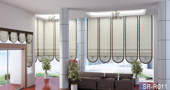 Rèm roman có thể kéo lên thành từng khúc, buông xuống có thể che kín căn phòng.
