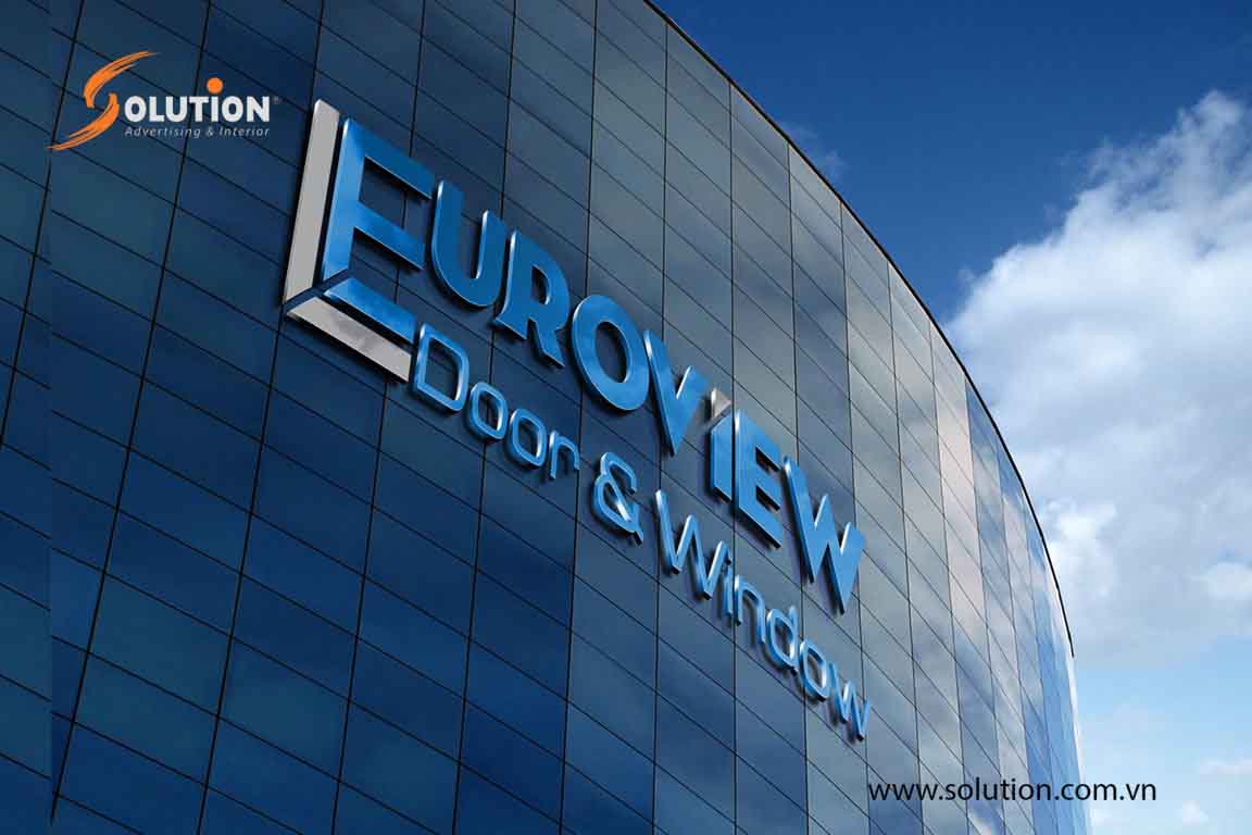 Bộ biển tên gắn trên nền kính của công ty EURO VIEW