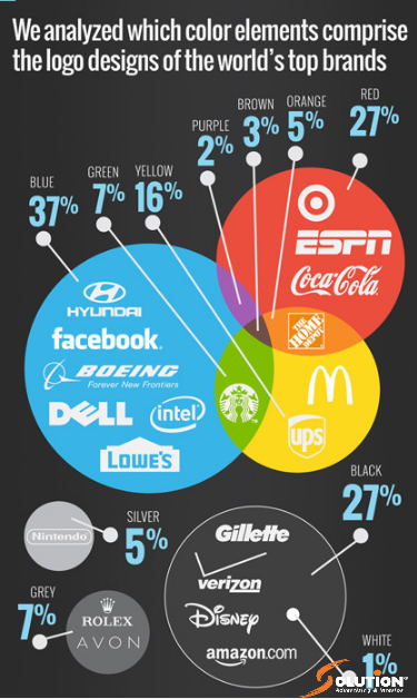 Theo các thống kê thì màu sắc rất được ưa chuộng là gam màu xanh dương đạt tới 37% khi mà các doanh nghiệp nổi tiếng lựa chọn. Bên cạnh đó thì gam màu đỏ và đen chiếm đến 27%. Màu khác thì xếp theo thứ tự giảm dần gồm màu vàng chiếm 16%, màu xám và màu xanh lá chiếm 7%, màu bạc và màu da cam chiếm 5%, màu trắng chiếm 1%, màu tím chiếm 2%.