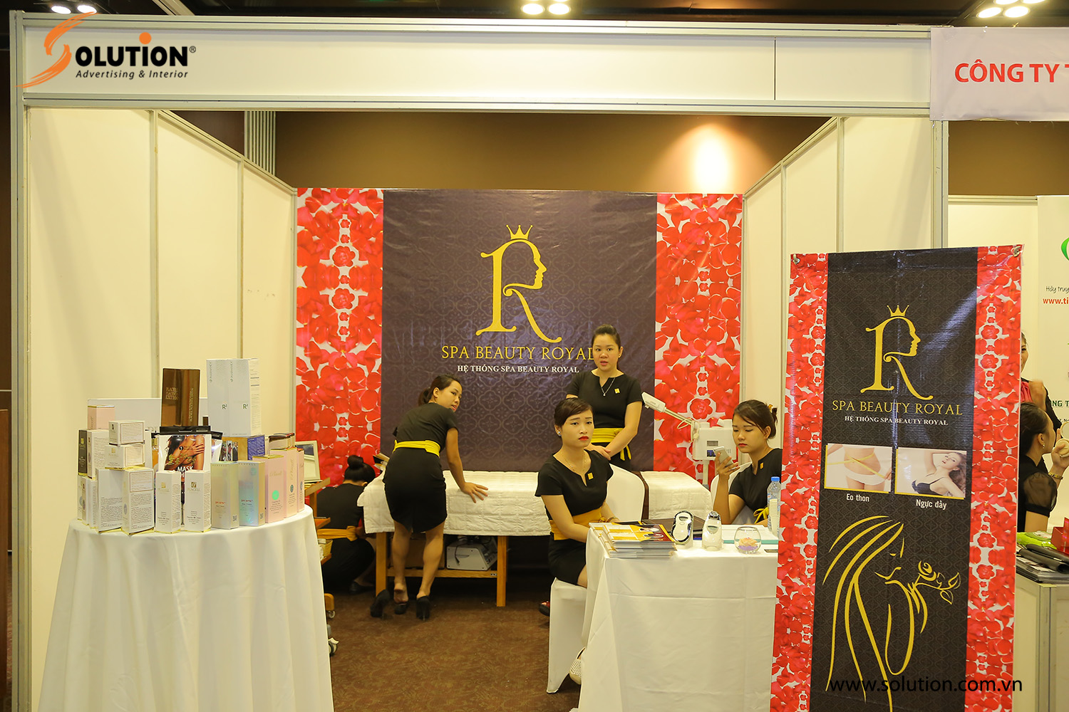 Đội thi công Solution setup gian hàng trong hội chợ triển lãm.
