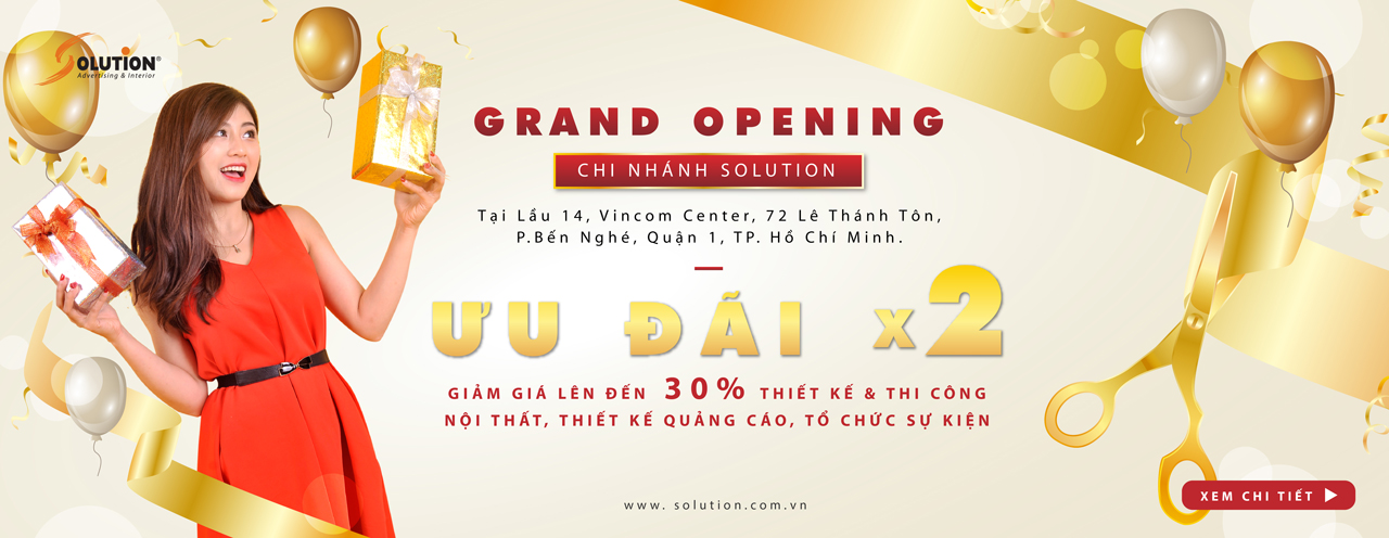 Nhân dịp khai trương chi nhánh của Công ty Cổ phần Quảng cáo Giải pháp Việt Nam (SOLUTION) tại Lầu 14, Vincom Center, 72 Lê Thánh Tôn, P. Bến Nghé, Quận 1, TP. Hồ Chí Minh, chúng tôi trân trọng mang đến quý khách hàng chương trình ưu đãi cực hấp dẫn.