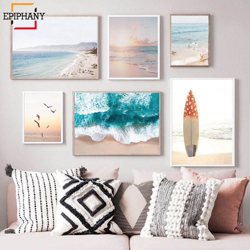 Các món đồ nội thất với họa tiết đại dương mang lại sự phóng khoáng, thân thiện với thiên nhiên. Đại dương cũng khiến con người liên tưởng đến tươi mát, chữa lành. Không gian dễ thể hiện kiểu dáng này nhất là phòng khách và phòng tắm. Bạn có thể sử dụng tranh treo tường, gối tựa sofa họa tiết đại dương làm điểm nhấn cho phòng khách.