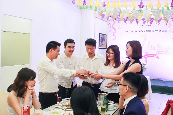 Toàn thể công ty Solution Group nâng ly chúc mừng. Chúc cho Solution Group ngày càng phát triển vững mạnh hơn nữa!