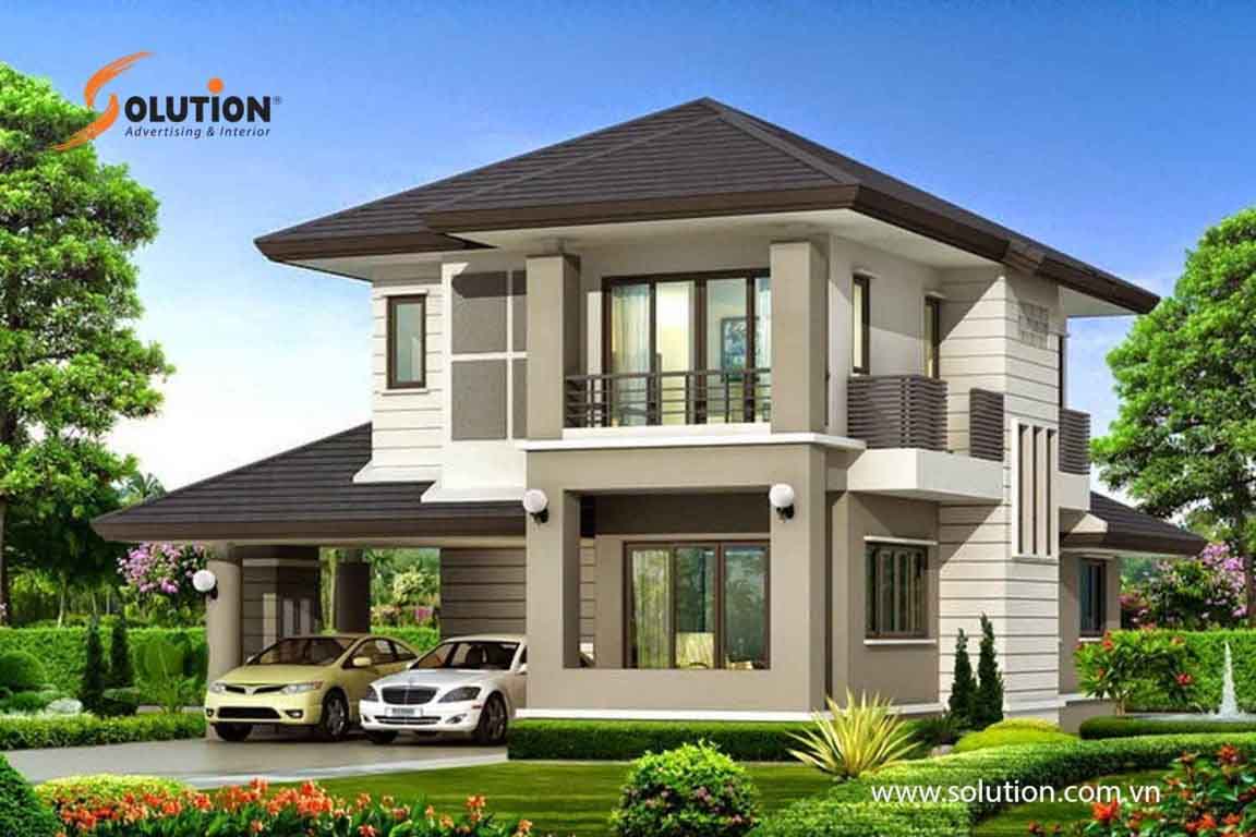 Không phải ngẫu nhiên mẫu thiết kế biệt thự 2 tầng đẹp này trở thành công trình gây ấn tượng ở dưới góc nhìn của nhà đầu tư, gia chủ, thiết kế với phong cách vô cùng hiện đại dựa trên sở thích của chủ nhân mong muốn sở hữu ngôi biệt thự 2 tầng mang phong cách trẻ trung, hiện đại, đường nét phóng khoáng cùng với tiêu chí đẹp – bền – rẻ. Do đó, đáp ứng nhu cầu khách hàng kiến trúc sư ở Solution khéo léo tạo nên đường nét kiến trúc và màu sắc cân đối và hài hòa nhất. Kết hợp khung cửa lớn và ban công rộng giúp gia chủ có view đẹp, tạo nên không gian để chủ nhân ngắm trăng, hòa mình trong thiên nhiên. Xung quanh là bồn hoa, kết hợp cùng vơi hệ thống đèn điện tạo nên sự sang trọng đến cho ngôi nhà.