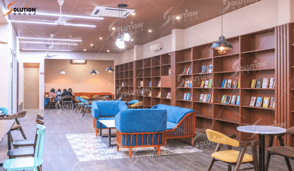 Nội thất quán cafe sách hiện đại thiết kế bởi Solution Group