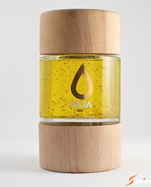 Là sản phẩm không sử dụng hoàn toàn nguyên liêu gỗ, nhưng chiếc lọ đựng dầu Olia rất tinh tế khi nó kết hợp thủ tinh và phần nắp, đáy bằng gỗ rất thanh lịch.
