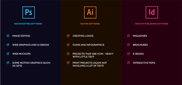 Khác với Adobe Photoshop và Adobe Illustrator, phần mềm Adobe InDesign hỗ trợ việc thiết kế với khả năng dàn trang. Do đó, InDesign (ID) có ưu điểm là sửa đổi và xử lý nhanh với những cuốn catalogue dài, nhiều trang.