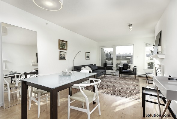 Đồ nội thất ở phòng khách và nhà bếp đặt gần nhau mà nó không ảnh hưởng đến sinh hoạt gia đình. Hoặc bố trí so le quầy bar, bàn ăn nhỏ để tạo ra được sự tiện nghi, khoảng trống lớn làm cho căn phòng đón gió, đón nắng và hòa với thiên nhiên.