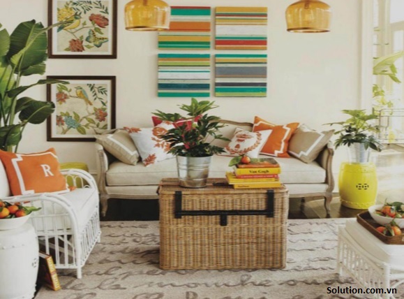 Kết hợp màu thích hợp cho các phòng với nhiều đồ nội thất như lọ hoa, đồ trang trí, gối, thảm, cốc chén, khung ảnh, gia chủ thích sự màu mè, sôi nổi.