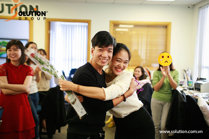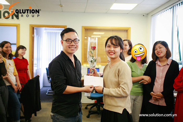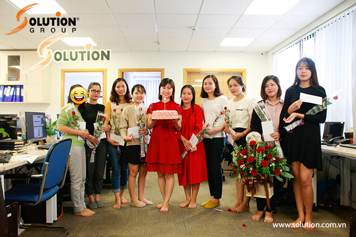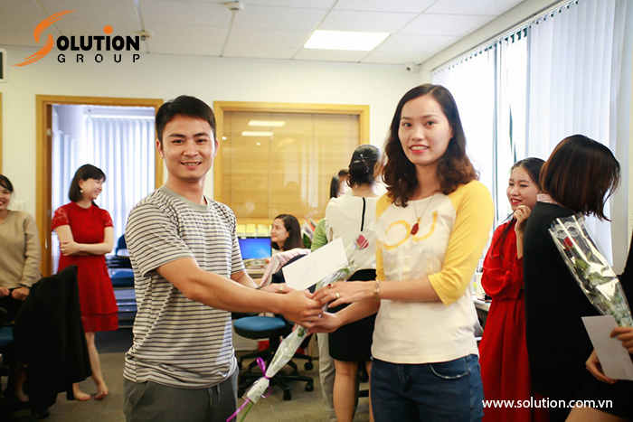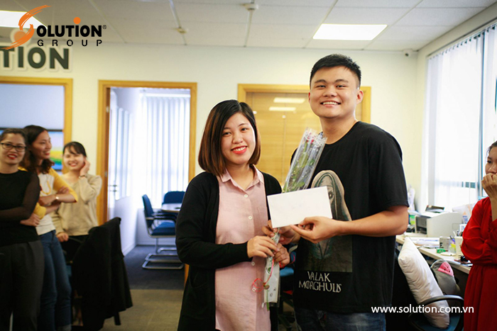 Các nam nhân Solution đã rất chu đáo chuẩn bị hoa quả, bánh kẹo cùng những bó hoa tươi thắm, tấm thiệp chúc mừng gửi đến các chị em trong công ty.