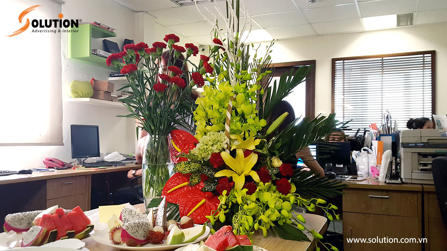 Trang trí hoa, quả, bánh kẹo tại văn phòng làm việc